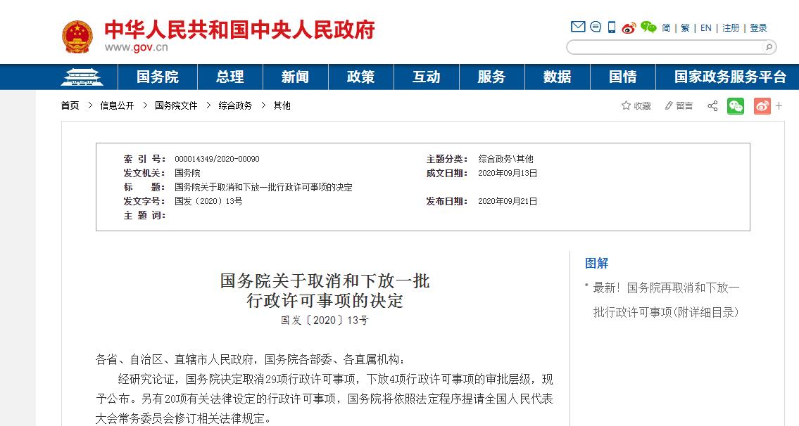 經(jīng)研究論證,國務(wù)院決定取消29項行政許可事項,下放4項行政許可事項的審批層級,現(xiàn)予公布。另有20項有關(guān)法律設(shè)定的行政許可事項,國務(wù)院將依照法定程序提請全國人民代表大會常務(wù)委員會修訂相關(guān)法律規(guī)定。